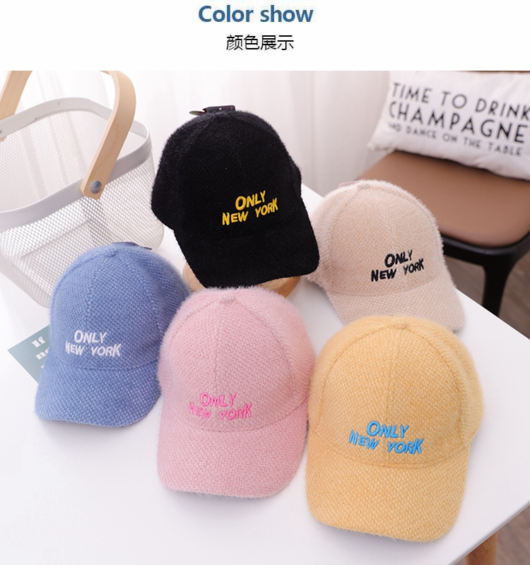 Baby Autumn Winter Hat Children Fur Ball Peaked Cap Boys and Girls Warm Mink Fur Baseball Cap Thickened Letter Cap Tide