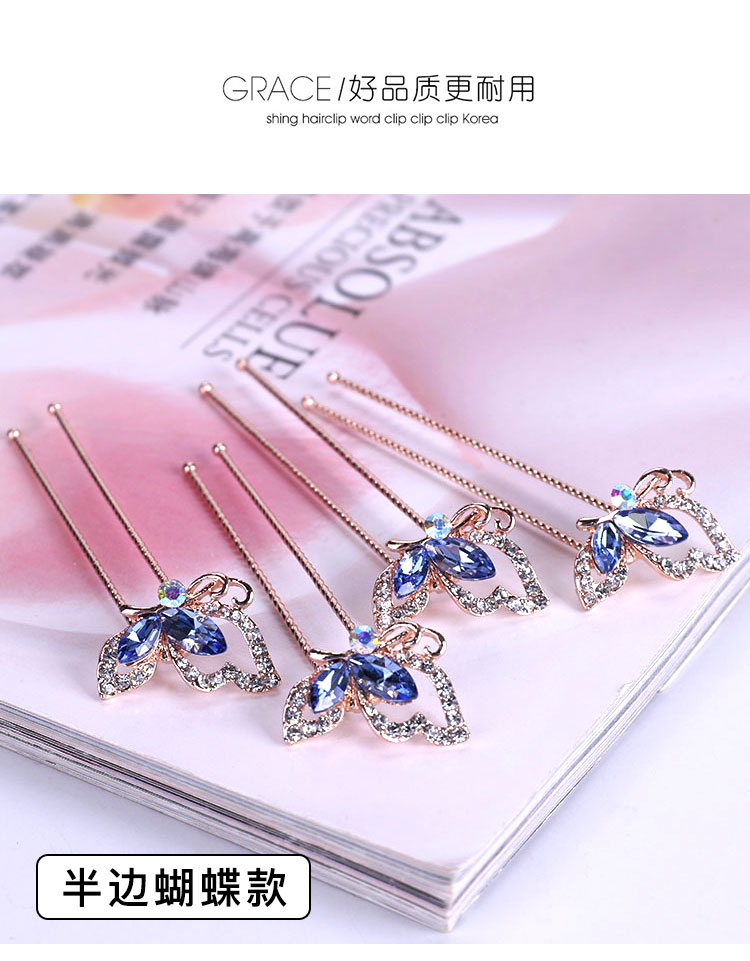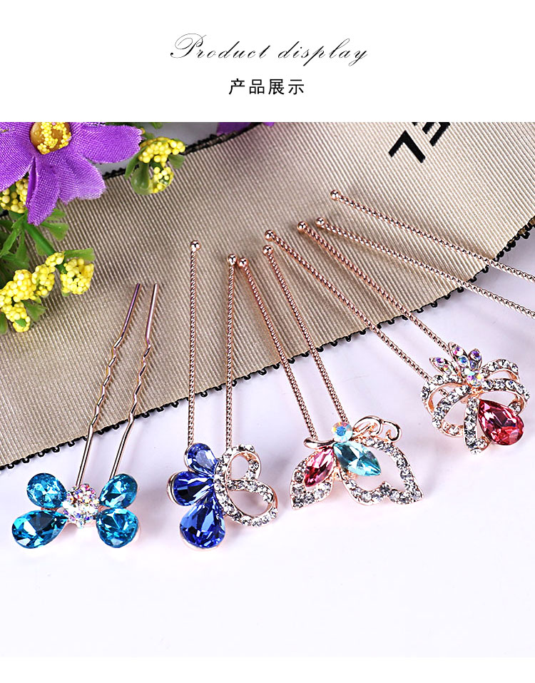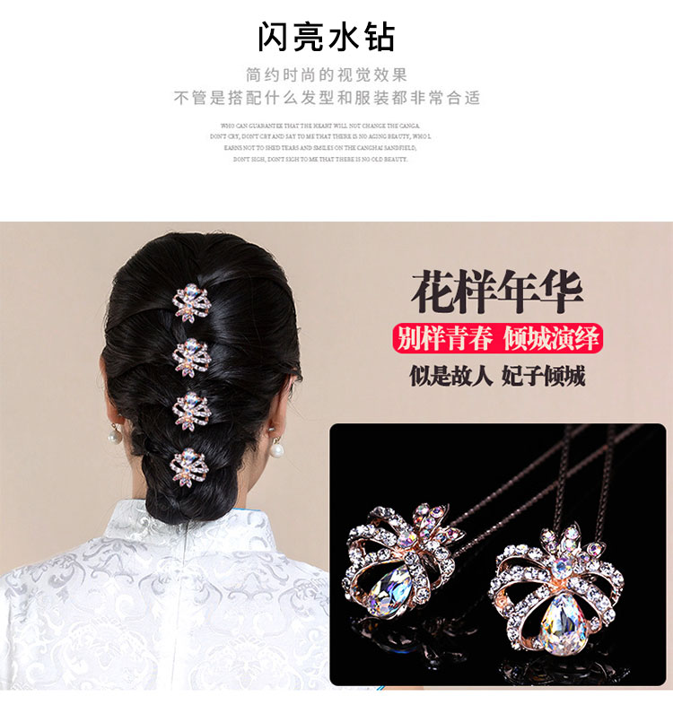 -Plated Inlaid Rhinestone Updo Pin Hairpin Hair Pin U Barrettes Adult Cheongsam Performance Head Accessories U hairpin