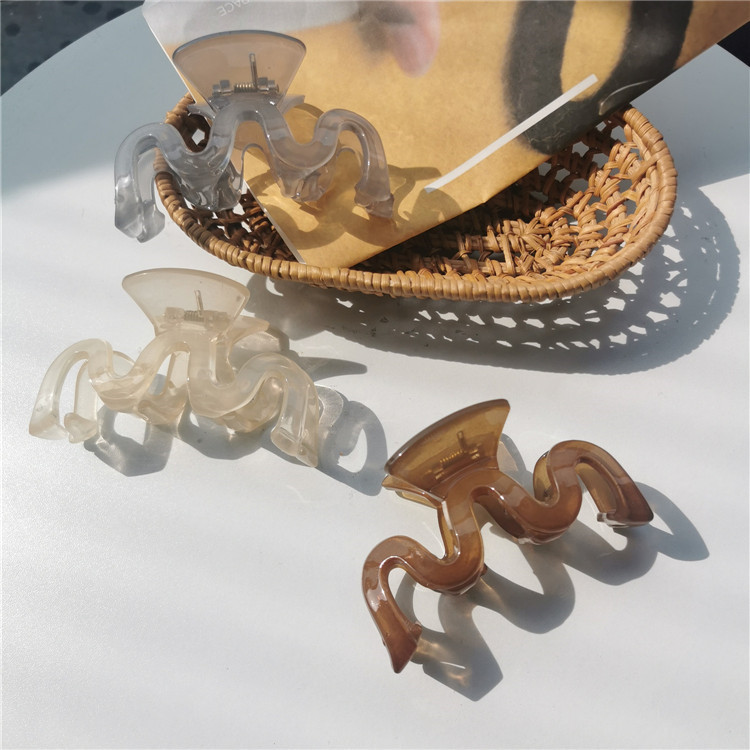French Retro Big Wave Hair Claw Korean Ins Back Head M Grip Temperament Hair Clip Hair Clip Shark Clip Acrylic Hairpin