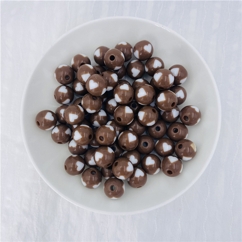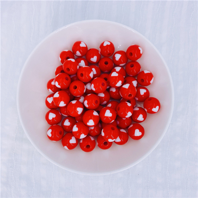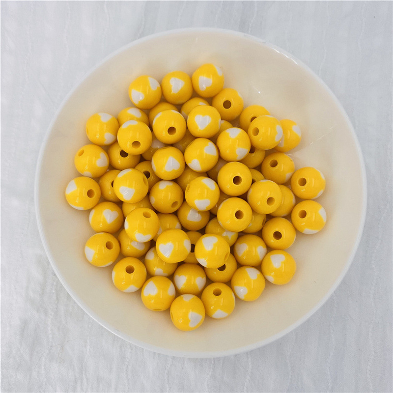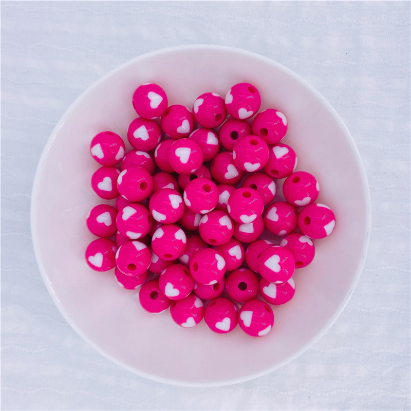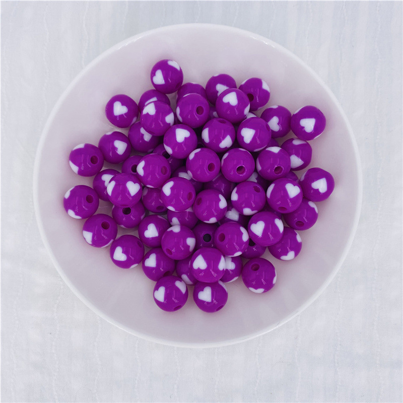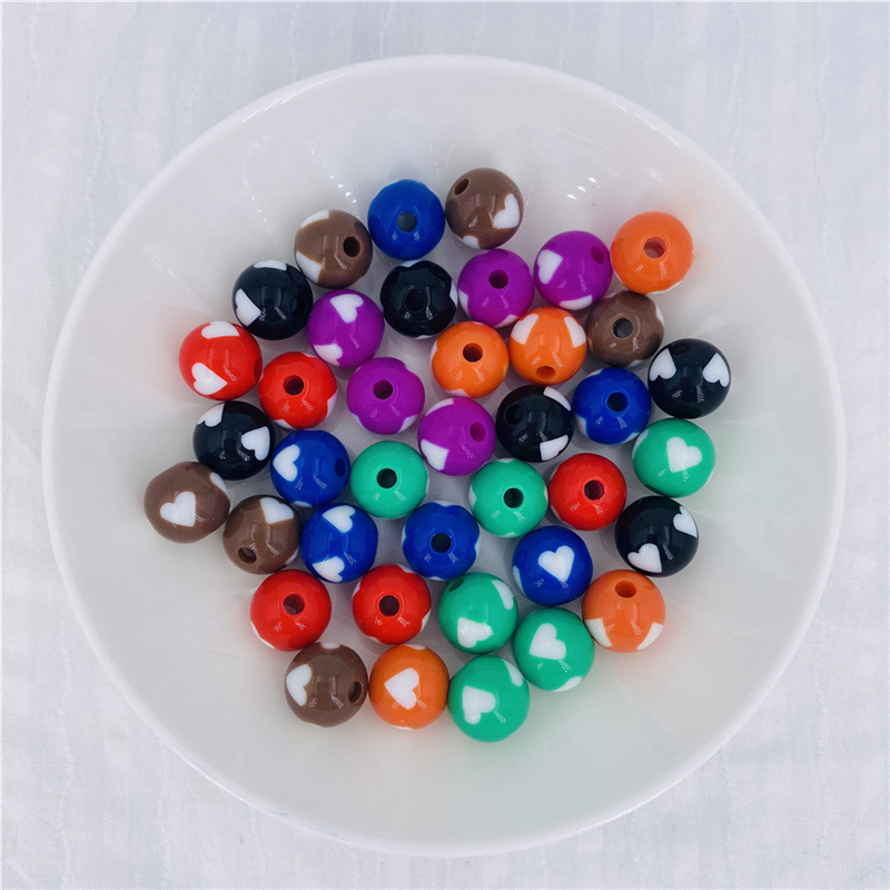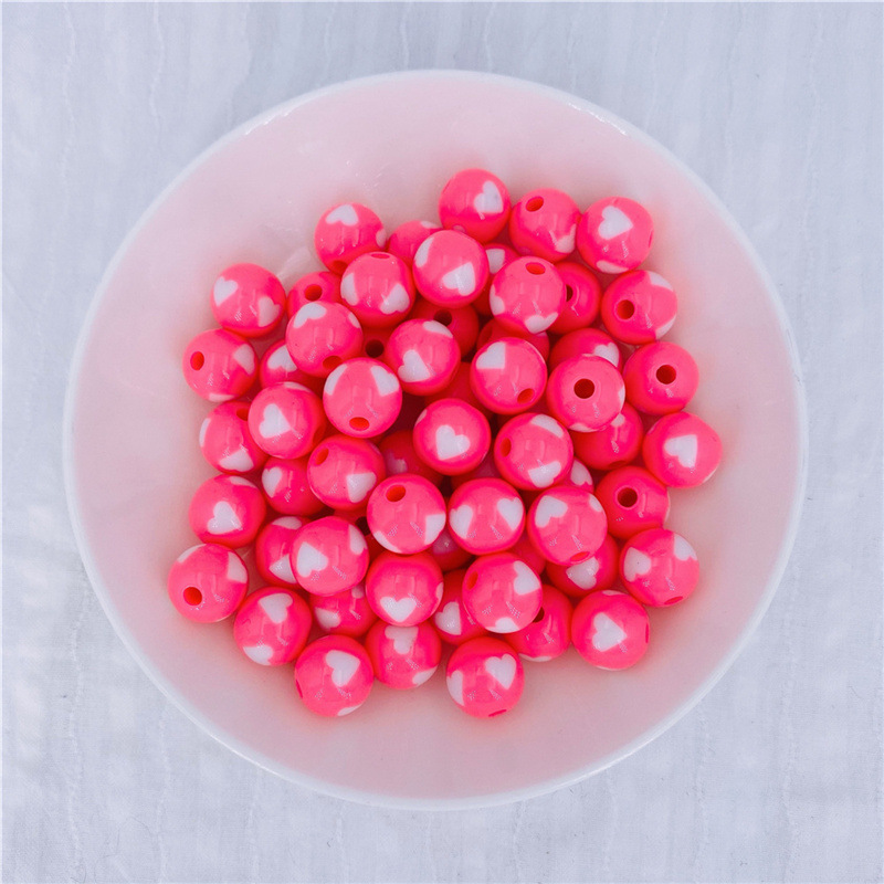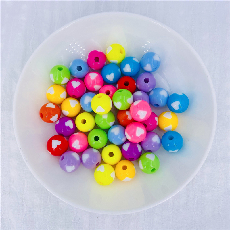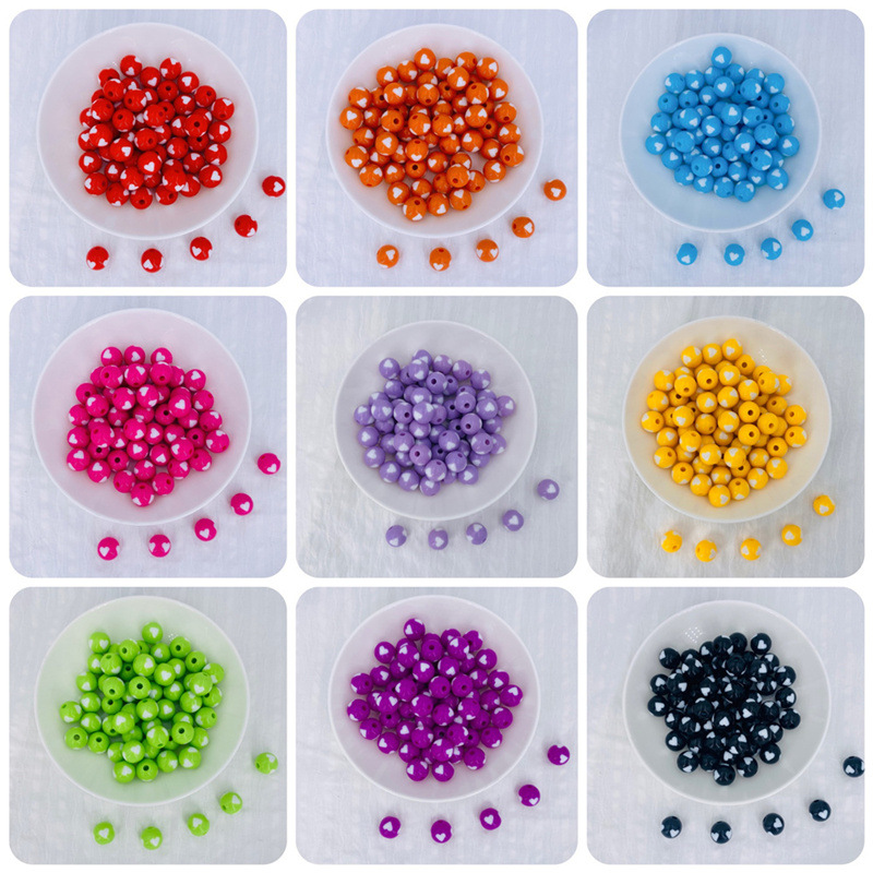 Acrylic Peach Heart round Beads Solid Candy Color Two-Color Straight Hole Beads Loose Beads Beads DIY Candy Bead