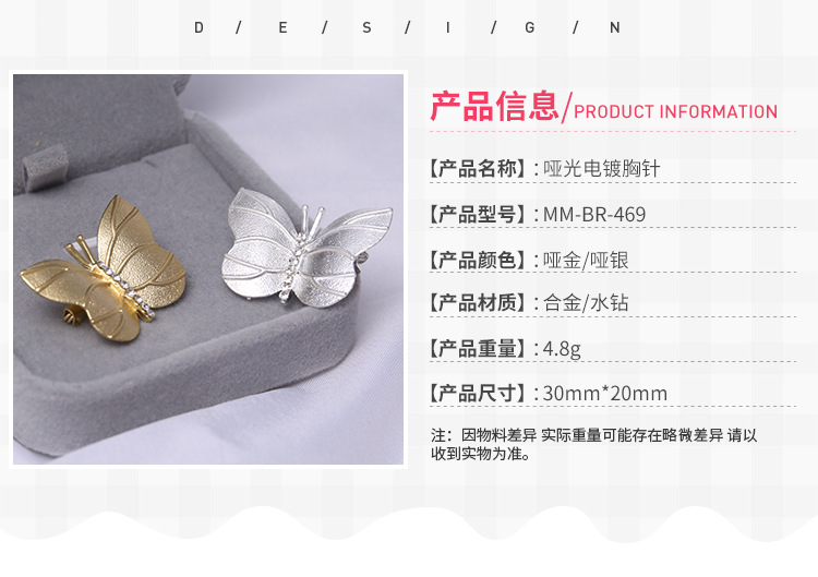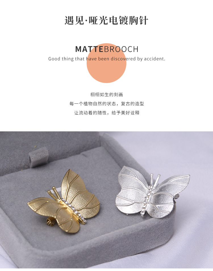 Butterfly matte brooch matte plating pearl brooch dumb gold dumb silver brooch retro coat coat coat brooch
