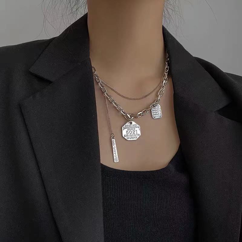 European and American Ins Retro Aloofness Style Titanium Steel Necklace Female Personality Multi-Layer Stainless Steel Clavicle Chain Internet Celebrity Simple Jewelry