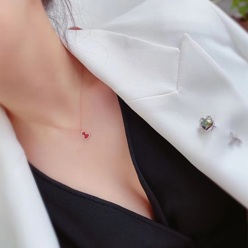 Seiko Calabash Pendent Necklace Female Red Agate White Shell Inlaid with Diamond Rose Gold Clavicle Necklace Calligraphy Chinese Style