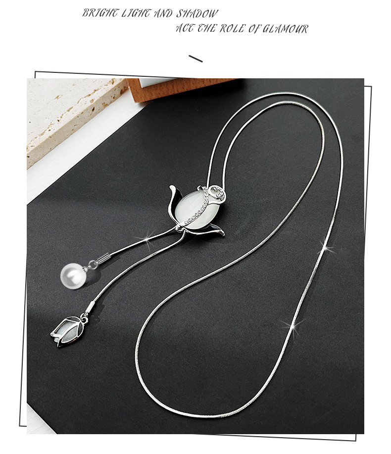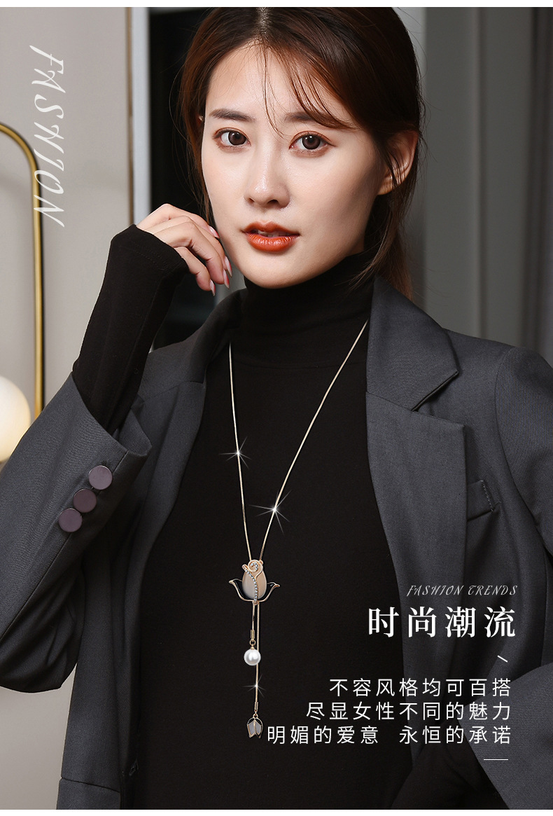 Factory Direct Sales Korean Autumn and Winter Long Necklace Accessories Tulip Opal Flower Sweater Chain Female Elegant Necklace