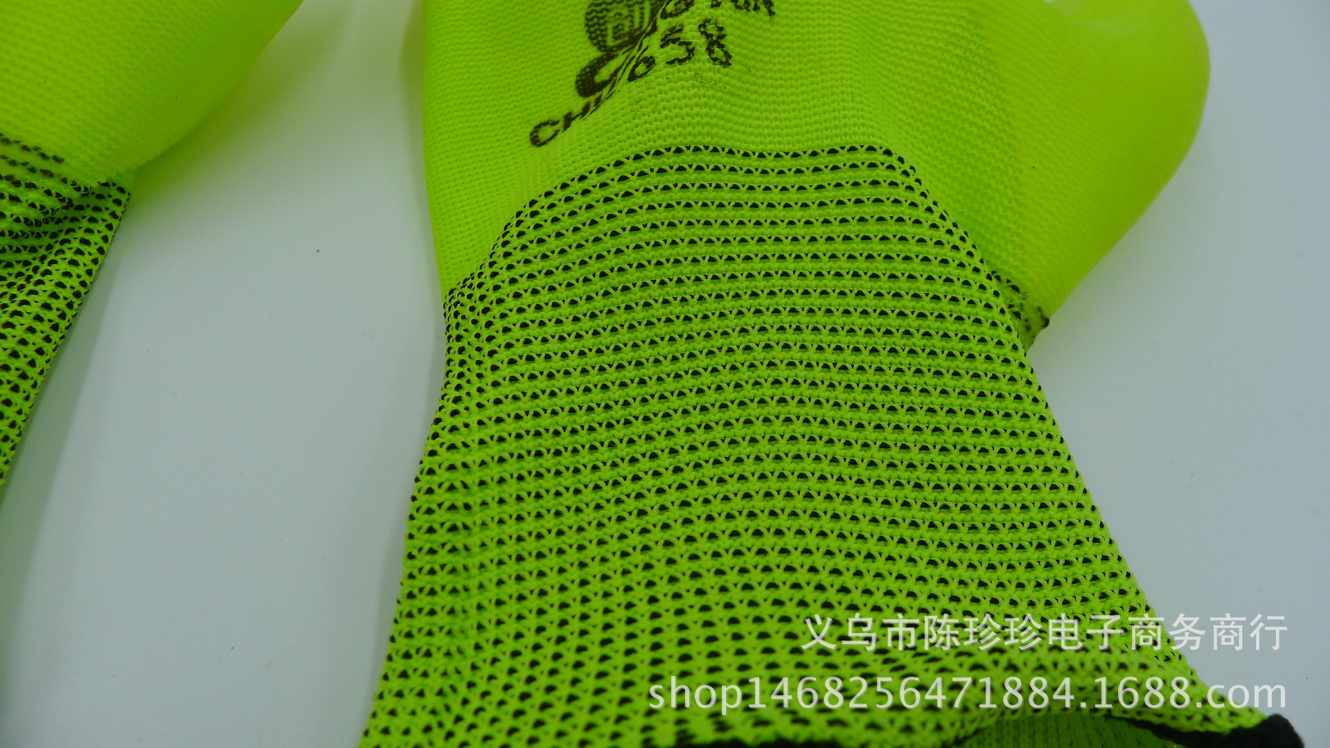 Manufacturer's direct selling crepe imported adhesive fluorescent green yarn 13 needle PVC half nylon gloves